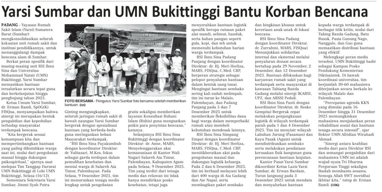 Kunjungan kali ini dihadiri oleh Ketua Umum YARSI SUMBAR serta pembina..